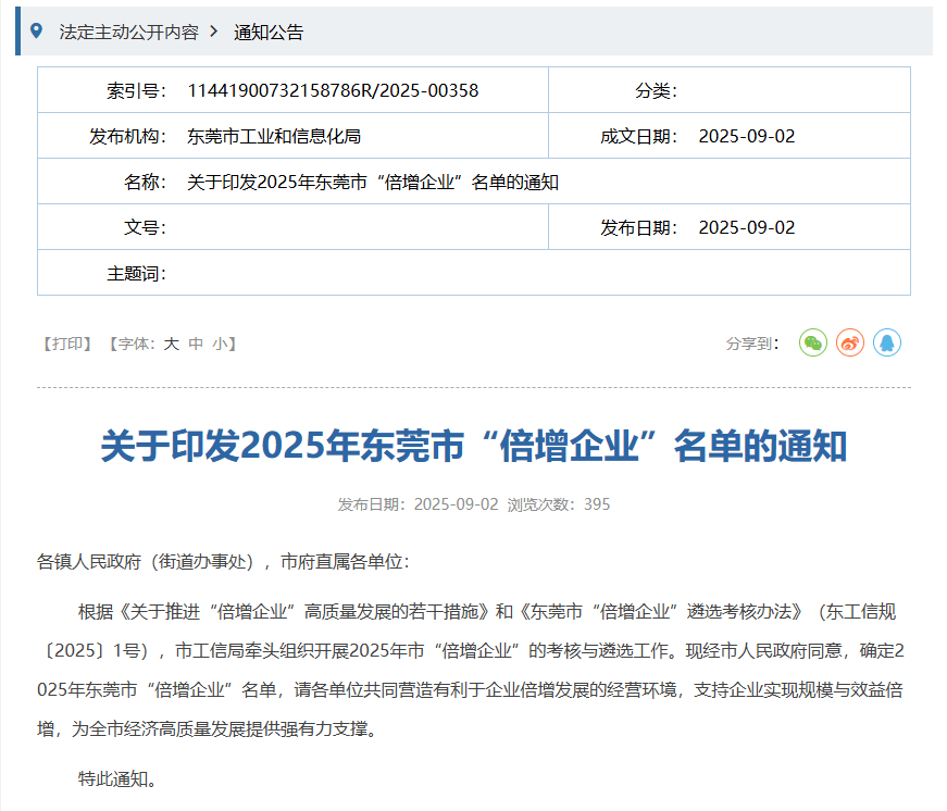 升威電子入選2025年?yáng)|莞市 “倍增企業(yè)” 名單